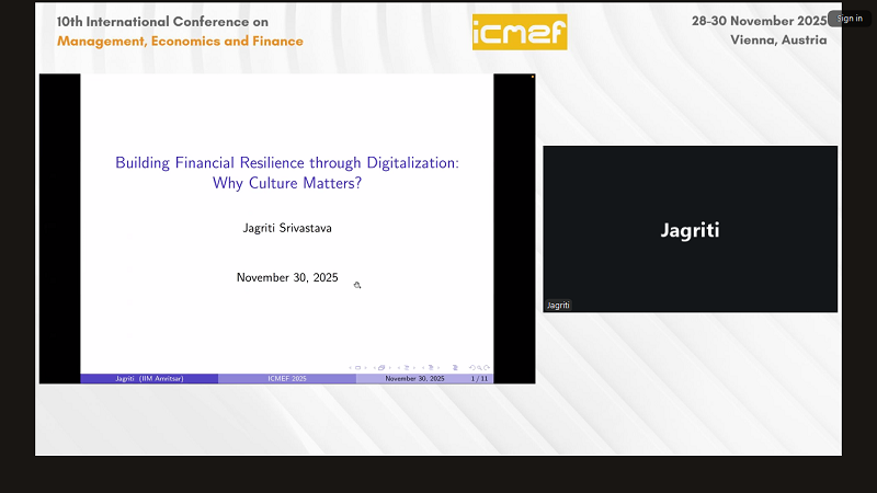 Dr. Jagriti Srivastava | Indian Institute of Management Amritsar, India | Building Financial Resilience through Digitalization: Why Culture Matters? |
